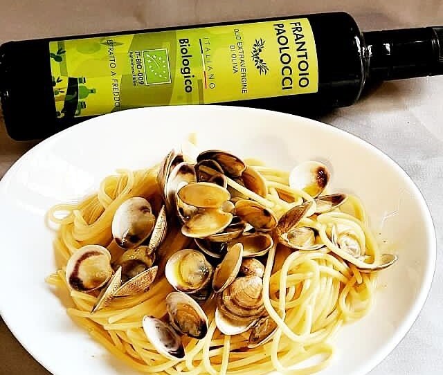 Lasciare le vongole in ammollo in una ciotola con acqua per almeno 30 minuti, dopodiché sotto acqua corrente. In una padella far rosolare uno spicchio di aglio con l’olio ed io peperoncino ed aggiungere le vongole. Cuocere con coperchio a fiamma bassa per circa 10 minuti e spegnere. Nel frattempo mettere sul fuoco la pentola di acqua per la pasta, quando bolle, salare e calare gli spaghetti. Aggiungere un mestolino di acqua di cottura al sughetto di vongole. Scolare gli spaghetti al dente. Amalgamare per un minuti a fiamma bassa insieme al sughetto di vongole, aggiungere un cucchiaio di olio extravergine d’oliva e gustare!!!